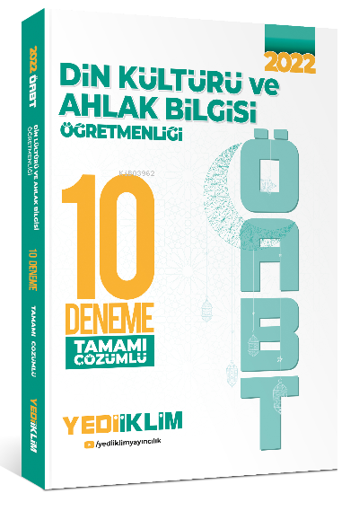 Yediiklim Yayınları 2022 ÖABT Din Kültürü ve Ahlak Bilgisi Öğretmenliği Tamamı Çözümlü 10 Deneme