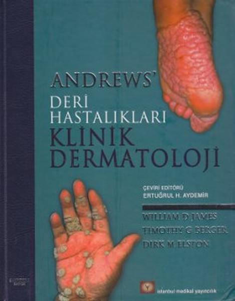 Andrew'ün deri hastaliklari,1930 dan beri,ilk siradaki dermatoloji referanslari arasinda saygideger yerini almaktadir.Klinik sunumlari ve tedaviyi sik ve nadir hastaliklarin tümünü kapsayarak,özlü,klinik odakli,kullaniciya yararli olacak sekilde sunma yaklasimi,onu dokuz en çok satan baskiyla,bir gözde haline getirmistir. *Bu onuncu baskinin yazarlari, kanita dayali tedavi rehberleriyle,birçok yillik klinik deneyimlerle deger kazanmis olan anekdotal önerileri dengeleyen çok saygin klinikçilerdir. *En son tedavilerin tümünün yer almasi için bastanbasa yenilenmesinin yani sira ilk kez bu baski,bastabasa renkli resimler içermektedir. *1500'ü askin yepyeni fotograf, hastaliklari klinik uygulamada sunuldugu gibi, netlikle resmetmektedir. *Yeni tutarli bir düzenleme bilgilere ulasmayi kolaylastirmaktadir. IÇINDEKILER 1. Deri Temel Yapi ve Islevleri 2. Kutanöz Bulgular ve Tani 3. Fiziksel Faktörlerle Olusan Dermatozlar 4. Pruritus ve Nörokutanöz Dermatozlar 5. Atopik Dermatit, Ekzema Ve EnfeksiyözOlmayan Immünyetmezlik Hastaliklari 6. Kontakt Dermatit ve Ilaç Erüpsiyonlari 7. Eritem ve Ürtiker 8. Bag Dokusu Hastaliklari 9. Müsinozlar 10. Seboreik Dermatit, Psoriasis, TekrarlayanPalmoplanter Erüpsiyonlar, Püstüler Dermatitve Eritrodermi 11. Pitriyazis Rozea, Pitriyazis Rubra Pilarisve Diger Papüloskuamöz ve HiperkeratozikHastaliklar 12. Liken Planus ve Iliskili Durumlar 13. Akne 14. Bakteriyel Enfeksiyonlar 15. Mantarlarin ve Mayalarin NedenOldugu Hastaliklar 16. Mikobakteriyel Hastaliklar 17. Hansen Hastaligi 18. Sifiliz, Yaws, Bejel ve Pinta 19. Viral Hastaliklar 20. Parazit Enfestasyonlari, Sokma ve Isirmalar 21. Kronik Büllü Dermatozlar 22. Nutrisyonel Hastaliklar 23. Derialti Yag dokusu Hastaliklari24. Endokrin Hastaliklar 25. Dermal Fibröz ve Elastik Doku Hastaliklari 26. Metabolizma Bozukluklari 27. Genodermatozlar ve Konjenital Anomaliler 28. Dermal ve Subkutan Tümörler 29. Epidermal Nevuslar, Neoplaziler ve Kistler 30. Melanositik Nevus ve Neoplaziler 31. Makrofaj/Monosit Hastaliklari 32. Derinin Lenfoid Hiperplazileri, DerininT Hücreli Lenfomasi ,Diger Malin Lenfomalarve Iliskili Hastaliklar 33. Deri Eklerinin Hastaliklari 34. Müköz Membran Hastaliklari 35. Kutanöz Vasküler Hastaliklar 36. Pigmentasyon Bozukluklari 37. Dermatolojik Cerrahi 38. Laser Cerrahi ve Kozmetik Dermatoloji