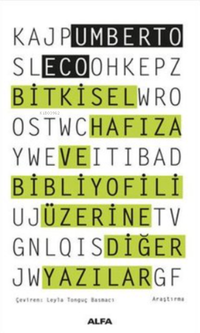 Umberto Eco Bitkisel Hafıza'da kitabın, ortaya çıktığı andan itibaren uygarlıkların evrimi ve büyük tektanrılı dinlerin doğuşu açısından önemini anlatıyor. Ve bir bibliyofil gözünden bakıyor kitap dünyasına. Peki nedir bibliyofil? Bibliyofil kitabı sevendir, ama sadece kitap okumakla yetinmeyen, aynı zamanda ona nesne olarak da sahip olmak isteyendir. Bu nedenle bibliyofili, her şeyden önce kitap nesnesine duyulan aşktır. Her zamanki keskinliği, mizahı ve yetkinliğiyle Eco, bibliyofili açısından önemli gördüğü eserleri gözden geçiriyor, anekdotlar anlatıyor, bir değerin izini sürüyor, kısacası bibliyofilinin büyülü dünyası için bize rehberlik ediyor. Çünkü Eco öncelikli olarak zaten bibliyofil olanları hedeflemiyor, henüz öyle olduğunu bilmeyen sayısız potansiyel okura sesleniyor.
