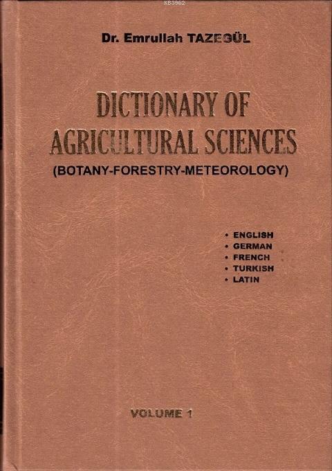 Dictionary Of Agricultural Sciences (Tarım Bilimleri Sözlüğü) Sözlük, İngilizce-Almanca-Türkçe-Latince olarak hazırlandı. Kitap 1. Ciltte (818 sayfa); Botanik,Ormancılık ve Meteoroloji ile ilgili sözcüklerin anlamları yer alıyor. Kitabın 2. cildinde ise (1271 sayfa) ; Tarım, Gıda ve Ekonomi ile ilgili kelimelerin İngilizce-Almanca-Türkçe-Latince karşılıkları yer alıyor. Bu kitap; Gıda Mühendisleri, Ziraat Mühendisleri, Orman Mühendisleri ve Meteoroloji Uzmanları ile Botanikçiler ve Ekonomistlerin başvuru kaynağıdır.