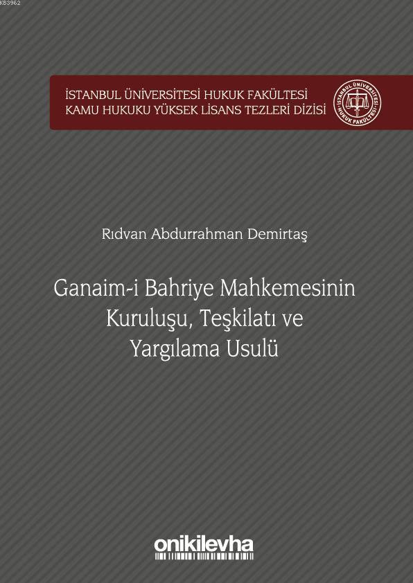 - Bu çalışma, uzun bir geçmişe sahip hukuk tarihimizin Tanzimat sonrasında ortaya çıkan bir mevzuunu ele almaktadır. Bugüne değin müstakil bir incelemeye konu olmamış, hakkında pek az bilgi bulunan, çoğumuzun hiç işitmediği "Ganaim-i Bahriye Mahkemesi", bu kitapla ilim aleminin gündemine girmiş olmaktadır. Bundan sonra, yeni çalışmalarda bu konuya daha fazla eğilinileceği tahmin edilebilir. "Ganaim-i Bahriye Mahkemesinin Kuruluşu, Teşkilatı ve Yargılama Usulü" kitabı, dört bölüm olarak tasarlanmıştır. Ganaim-i bahriye ve ilgili kavramları ele alan birinci bölümü, "Ganaim-i Bahriye Mahkemesinin Kuruluşu" adlı ikinci bölüm izlemekte, çalışma "Ganaim-i Bahriye Mahkemesinin Teşkilatı" adlı üçüncü bölümüyle devam etmekte, "Ganaim-i Bahriye Mahkemesinin Yargılama Usulü"nün incelendiği dördüncü bölümle tamamlanmaktadır. Ekleri olan Ganaim-i Bahriye Kanun-ı Muvakkati, Müsadereleri Ganaim-i Bahriye Mehakimince Tasdik Edilen Sefain ve Merakib-i Bahriye Hakkında Kanun-ı Muvakkat, Dersaadette Teşekkül Eden Ganaim-i Bahriye Meclisi Nizamnamesi, Ganaim-i Bahriye Meclis-i Muvakkatine Dair Kararname, Ganaim-i Bahriye Hakkında Talimat, İstanbul Dersaadet Ganaim-i Bahriye Mahkemesi Heyetinin bir Fotoğrafı ile zenginleştirilen kitap, meseleyi derli toplu tetkik eden ilk çalışma olarak, kendisinden sonra yapılacak benzeri çalışmalara başlangıç ve örnek olacak niteliktedir.