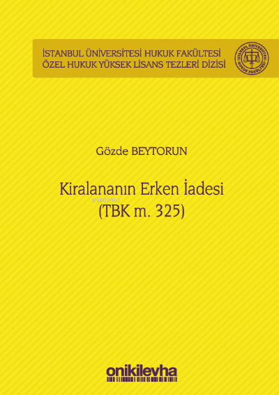 Kiralananın Erken İadesi (TBK m. 325) İstanbul Üniversitesi Hukuk Fakültesi Özel Hukuk Yüksek Lisans Tezleri Dizisi No: 53